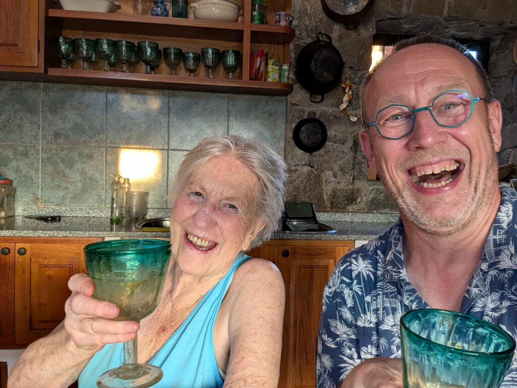 Giorgio, directeur de l’Intequi et fêtard insatiable et elle au four et au moulin pour recevoir constamment des gens de tous horizons, préparer des fêtes débridées où la joie de vivre puisait notamment sa force dans les multiples épreuves terribles qu’ils avaient traversées tout au long de leurs vies chahutée par les guerres, les persécutions de la dictature, l’exil, des deuils violents et la gnaque de toujours refuser la résignation. Respect absolu. Giorgio n’est plus. Mary s’est retirée dans une maison perchée sur une colline à El Volcán, vue sur le lac. Il n’est pas sûr qu’elle veuille voir qui que ce soit. Ses amis ne la voient plus. Je tente. Un appel sans décrocher mais un texto « Quién sos?« . Je réponds qui je suis, quelques photos d’époque à l’appui. Elle m’invite à passer après 18h quand la température aura baissé un peu (pas tant que ça, le temps est toujours un peu instable et orageux). Encore des retrouvailles fortes en émotion. On évoque le passé mais ne nous attardons pas trop sur les disparu car cela lui fait mal. Elle préfère rire et penser au présent. Elle rit beaucoup. Elle semble revivre dans le monde après des années d’une vie d’ermite à moins que ce soit un autre exil plus intérieur. On cuisine ensemble (comme en 92), on mange, on siffle une bouteille de Chardonnay qui fait du bien. On trinque et on retrinque toutes les cinq minutes « aux disparus », « aux vivants », « aux amis », « Joyeux Noël », « aux enfants », « bon anniversaire », « au future », « au présent » puis on recommence pour ponctuer les discussions sur les boludos du gouvernements qui ne font que des huevadas, ces hijos de la gran puta que lo parió, che… etc la corruption, tout y passe, même une conversation sur Sylvester Stallone dont elle s’est découverte admiratrice. Ben la Mary que je pensais trouver à la totale ramasse, elle a encore du répondant dans son petit corps flétri de 82 hivers et 83 printemps. Quelle soirée de ouf.