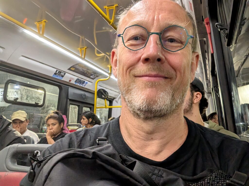 Je descends à pied de sa colline, sur la route, pas de réseau, pas de Uber, des voitures qui ne s’arrêtent pas. Arghhh, 30km à pattes, pas trop envie dans cette chaleur moite. Finalement un bus s’arrête au beau milieu de la route rapide. Un millón de Gracias, chófer.