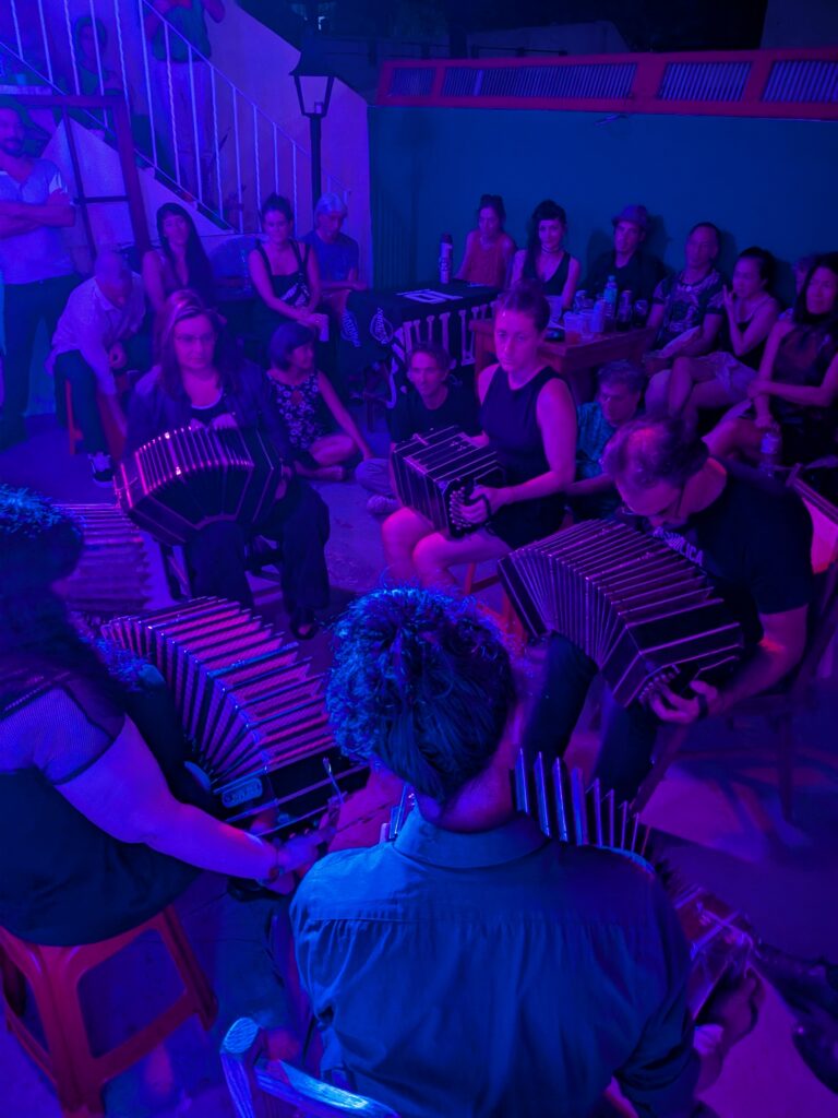 La première impression est que le tango de demain se définit dans ce genre d’endroits où des artistes viennent partager leur pratique et leur expérience artistique et leur pédagogie de maitres du genre.