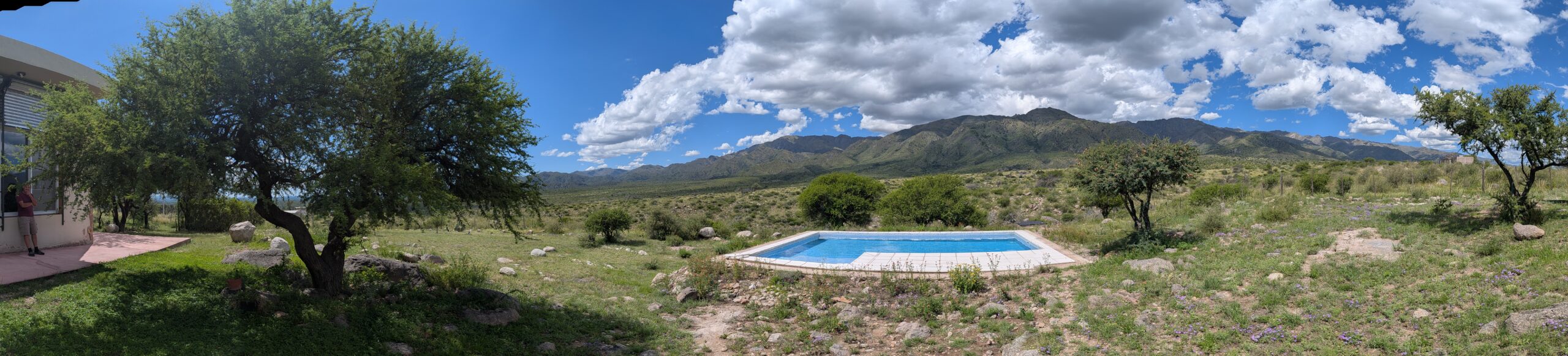 Jour d’asado chez Nelly et Carlos, profs à la retraite et amis de Mirta et Carlos Zuppa. Nous allons à Estancia Grande. Remarquez que les lieux où les Puntanos aiment être sont souvent liés à la Sierra, la présence d’un lac ou d’une rivière pour se rafraichir. Du coup, je passe d’un côté à l’autre de la Sierra (vus que San Luis à la punta). C’est mon troisième asado en 4 jours. Merci Cristina et Luis de n’avoir précisément pas préparé d’asado mais de magnifiques canellonis maison, sachant ce qui m’attendait.