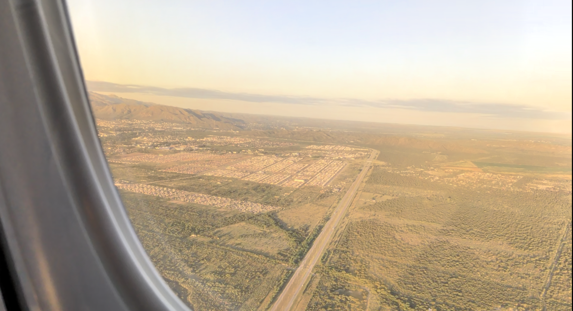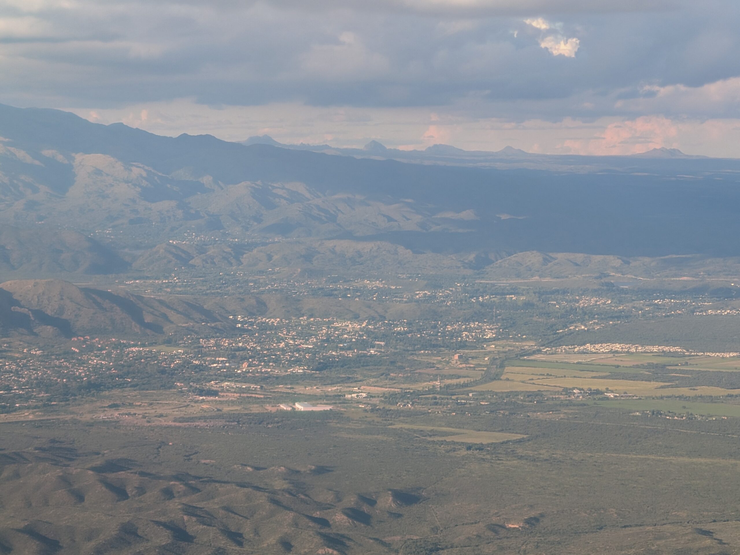 Et me voilà à l’aéroport avec mon comité de femmes accompagnantes, les mêmes qu’à l’arrivée. Embarquement et vue dégagée de San Luis au décollage. La Sierra, la ville, Juana Koslay, El Potrero, El Volcán, Villa de la Quebrada, La Punta tout y est. Même les Comechigones à l’horizon (une Sierra escarpée qui sépare la Province de San Luis de Córdoba.